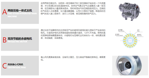 空壓機品牌哪家好,空壓機節(jié)能選擇艾高永磁變頻空壓機。艾高BPM110兩級壓縮永磁變頻螺桿式空壓機采用兩級壓縮主機,也即將一級壓縮轉子和二級壓縮轉子組合在一個機殼里面,并分別通過斜齒輪直接傳動。自然空氣通過空氣過濾器進入第一級壓縮,在壓縮腔與少量潤滑油混合,同時將混合氣體壓縮到級間壓力。